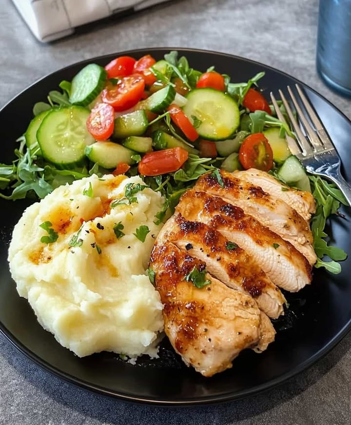 The Golden Pan-Seared Chicken Breast with Creamy Mashed Potatoes & Fresh Garden Salad is a delightful meal that brings comfort and satisfaction to any dining table. Perfect for family dinners, special occasions, or a cozy night in, this dish is packed with flavor and freshness. The combination of juicy chicken, creamy potatoes, and vibrant salad makes it a well-rounded meal that’s sure to impress.